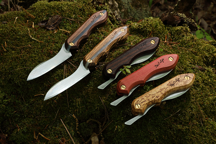 ダマスカス刃の波紋とハマグリ刃形状による鋭い切れ味。その独創的な反ったシルエットだからこそ実現できた折り畳みナイフなのに包丁のように使いこなせるFEDECAの使い心地。そして、唯一無二の所有欲を満たしてくれる超希少種による柄の模様と手触り。そのどれかひとつが欠けても成立しなかったのが今回のプロジェクトなのです。