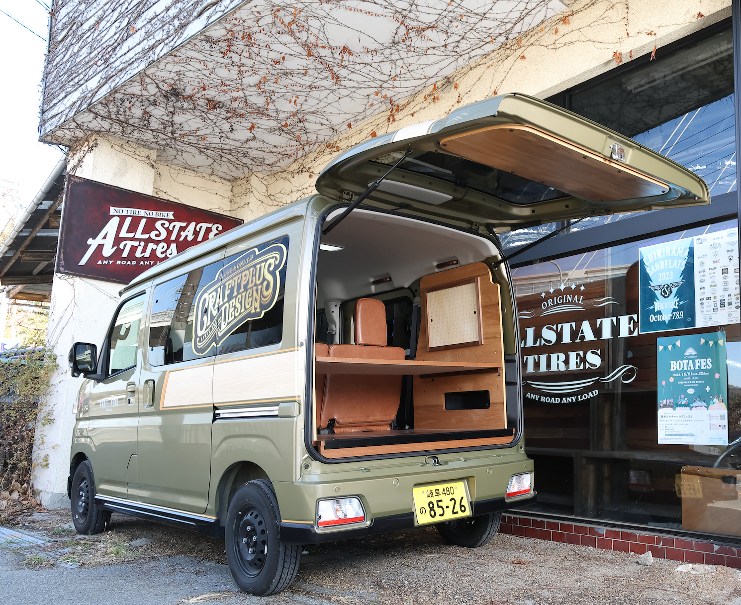 アトレーの広々空間をいかしたCRAFTPLUSらしい内装は、純正機能を損なうことなく「日常」でも「アウトドア」でもどちらも使用可能なスタイルを実現しました!純正の外装カラーにマッチした内装生地は大人気のコーデュロイを採用し、CRAFTPLUSが得意とする木材との相性も抜群です。これは絶対見て欲しい!!