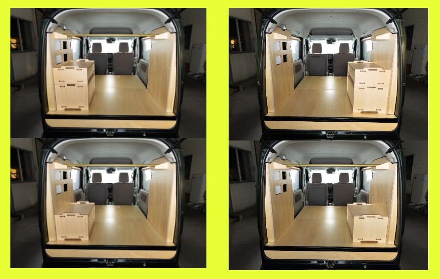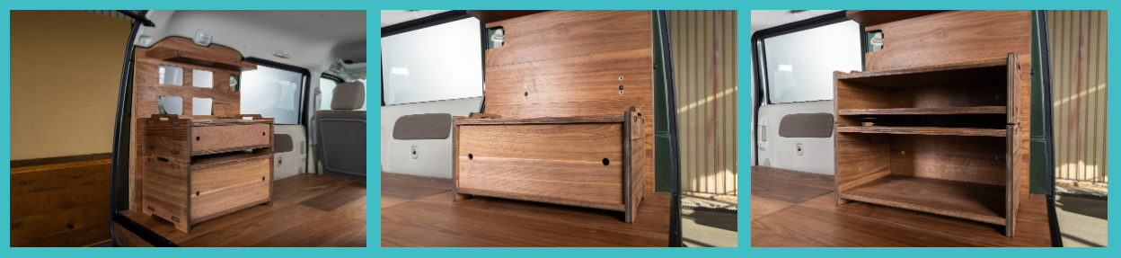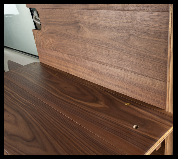 こちらのカーゴキットは【シナ合板】と【ウォルナット】2つの木材からお選びいただけいます。それぞれ違った見た目と触り心地、どちらも雰囲気が違ってバンライフを楽しめること間違いなし!アナタらしい車内空間を完成させてください。