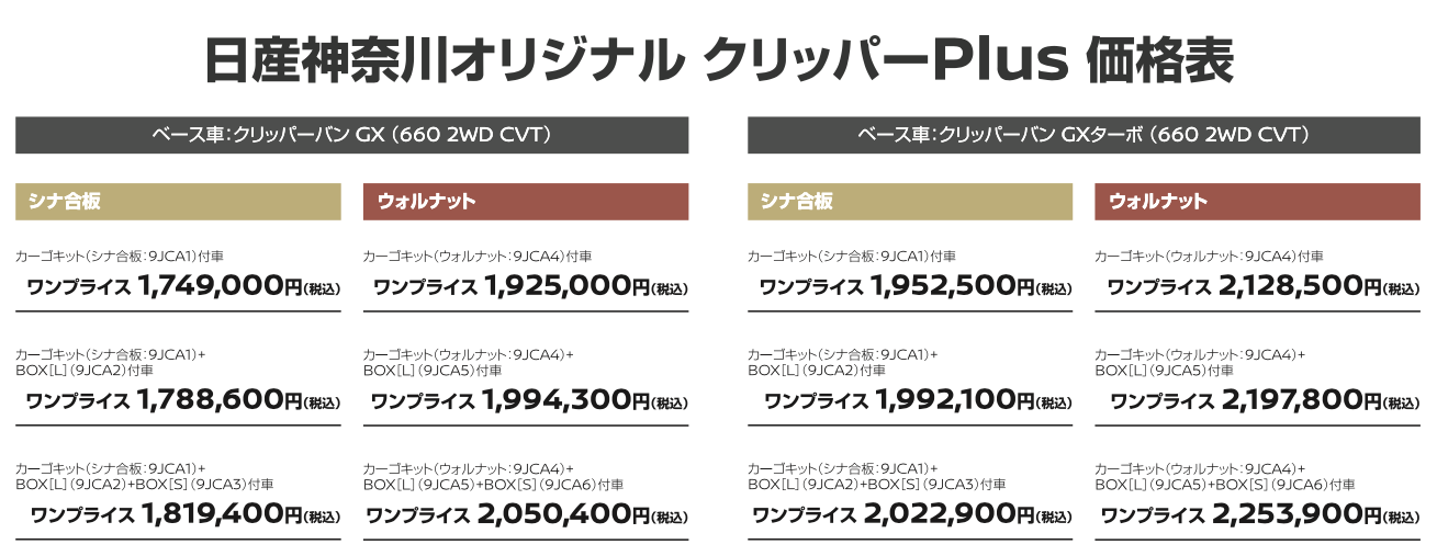 「クリッパーPlus内装キットのみ」の販売も可能でございます。