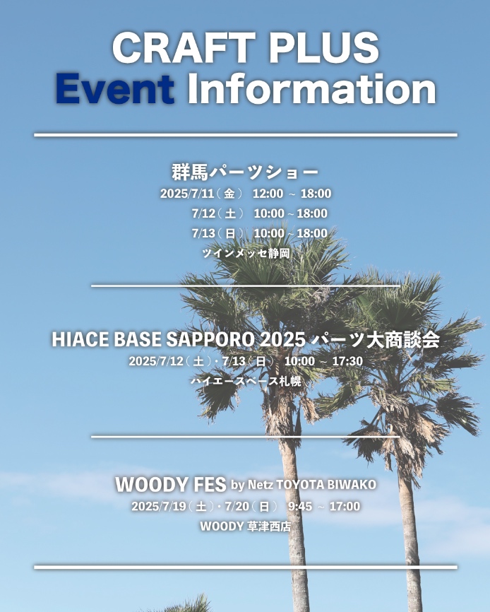 CRAFTPLUS DESIGNコンプリート車両を、実際に「見て・触れて・体感」できるチャンスです。