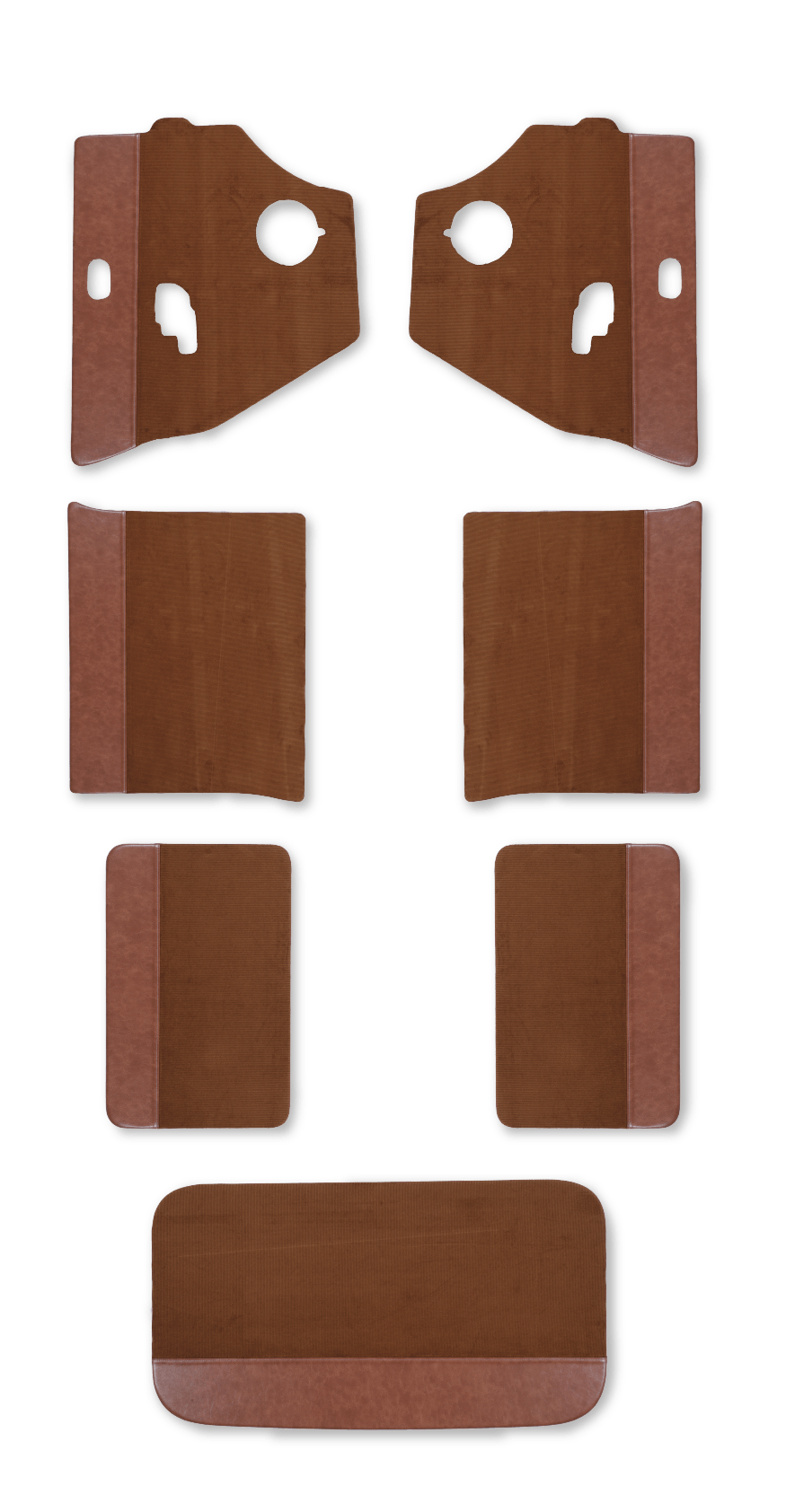 交換することで印象が劇的に変わる内張りパネル。フロントドア左右に2枚、リヤドア左右に2枚、ラゲッジ部に3枚(左右2枚+バックドア1枚)を設定。これはお好みに応じて●フロント2枚、●フロント+リヤ4枚、●トータル7枚、の3種類からも選べるようになっています。使用する柄はシート生地と連動させることが出来るため車内のコンプリート感をアップさせるのにも絶好のアイテム。取り付けは純正のパネルを外してクラフトプラス製品にガラッと変更するやり方と、純正のパネルを脱着→丸ごとパネルをクラフトプラスに発送→純正部品を生かして生地の取り付け加工をご依頼いただくという2通りのプランを用意しています。