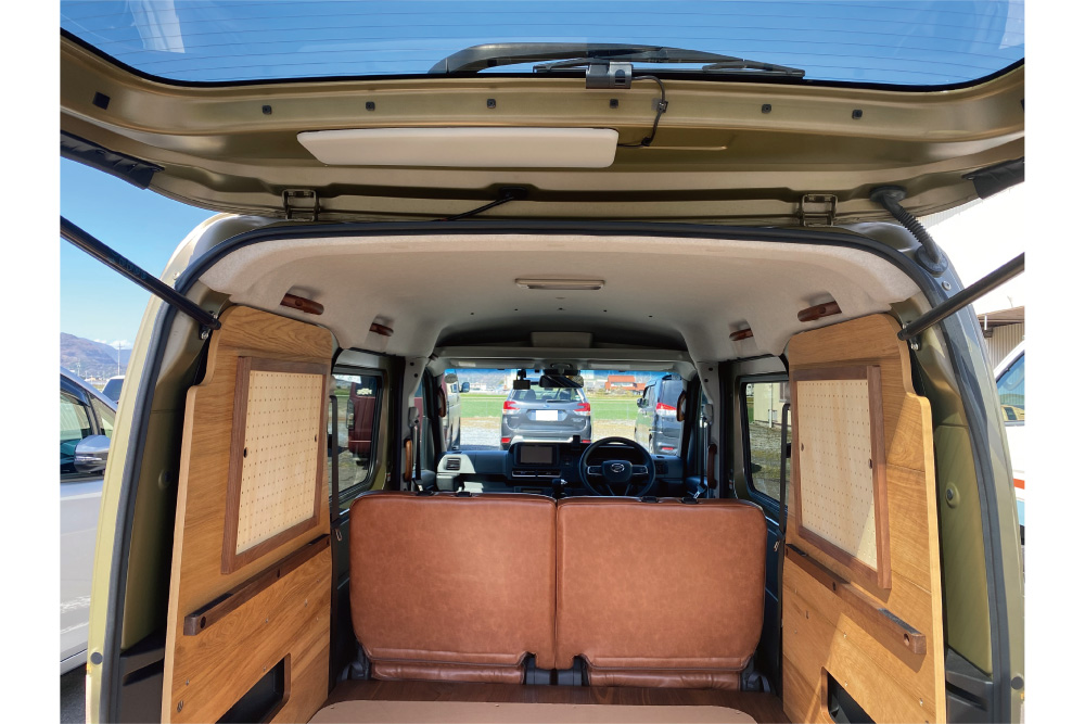 機能的ではあるものの無機質な純正の室内に対し、リアルウッドの無垢材の彩りがプラスされ、