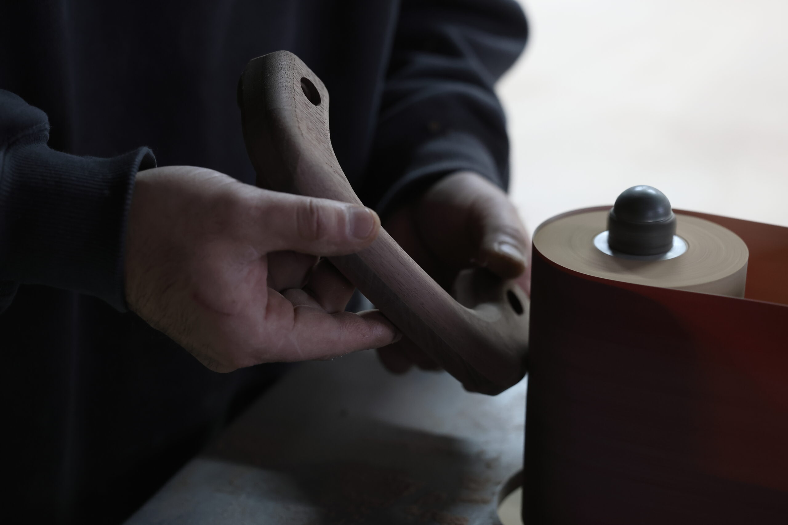 木が呼吸することや強度まで考えて職人がひとつひとつ木素材を張り合わせ、削り込み、磨き、徹底して握り心地にこだわった渾身の作。
