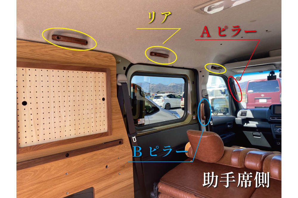 個性的なバンライフにもぴったりなアシストグリップ。
