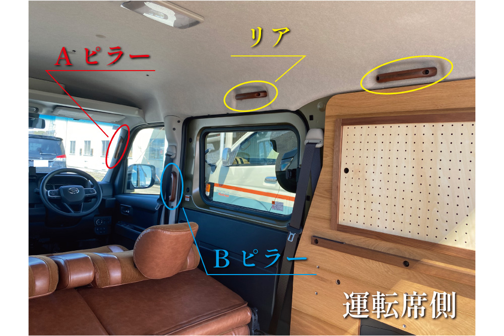 アトレーにはフロントにAピラー2個とリア用助手席側に1個。