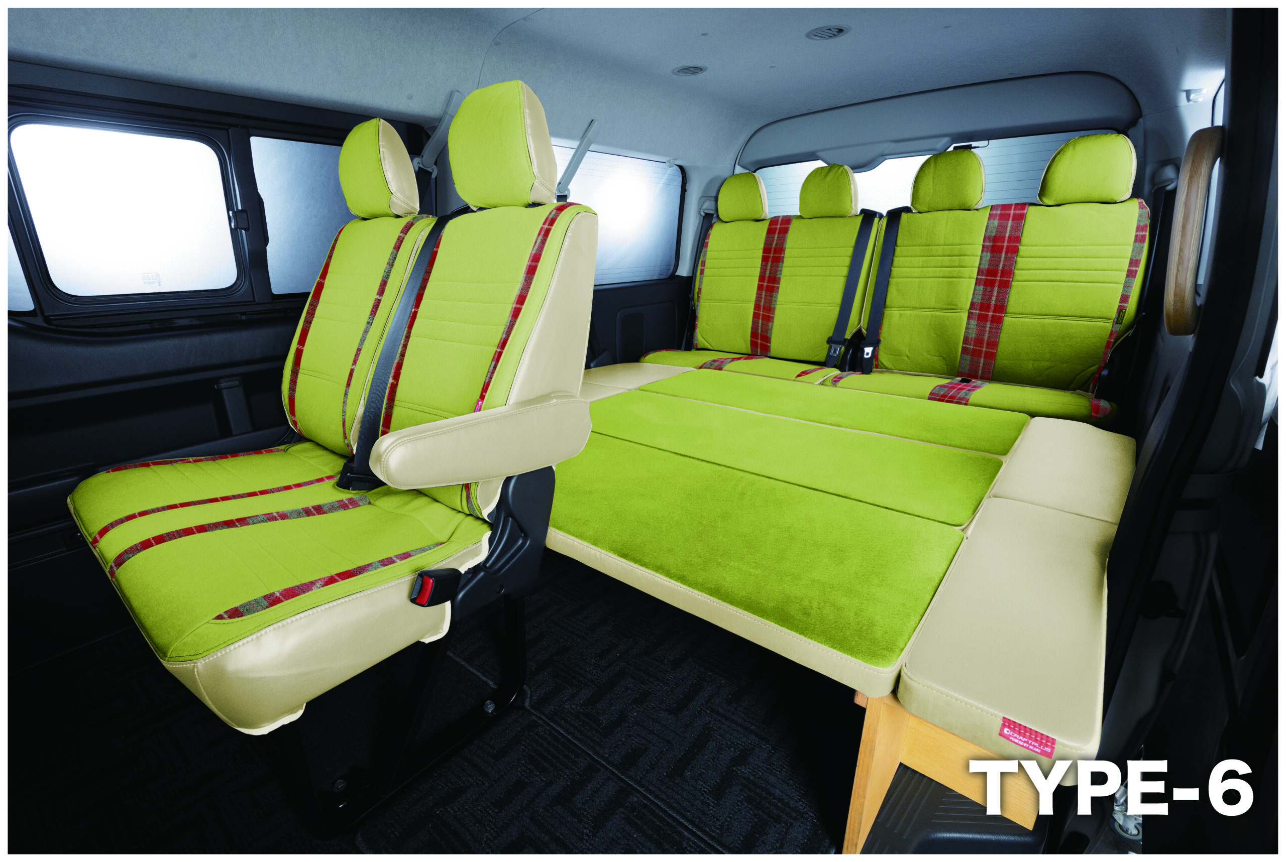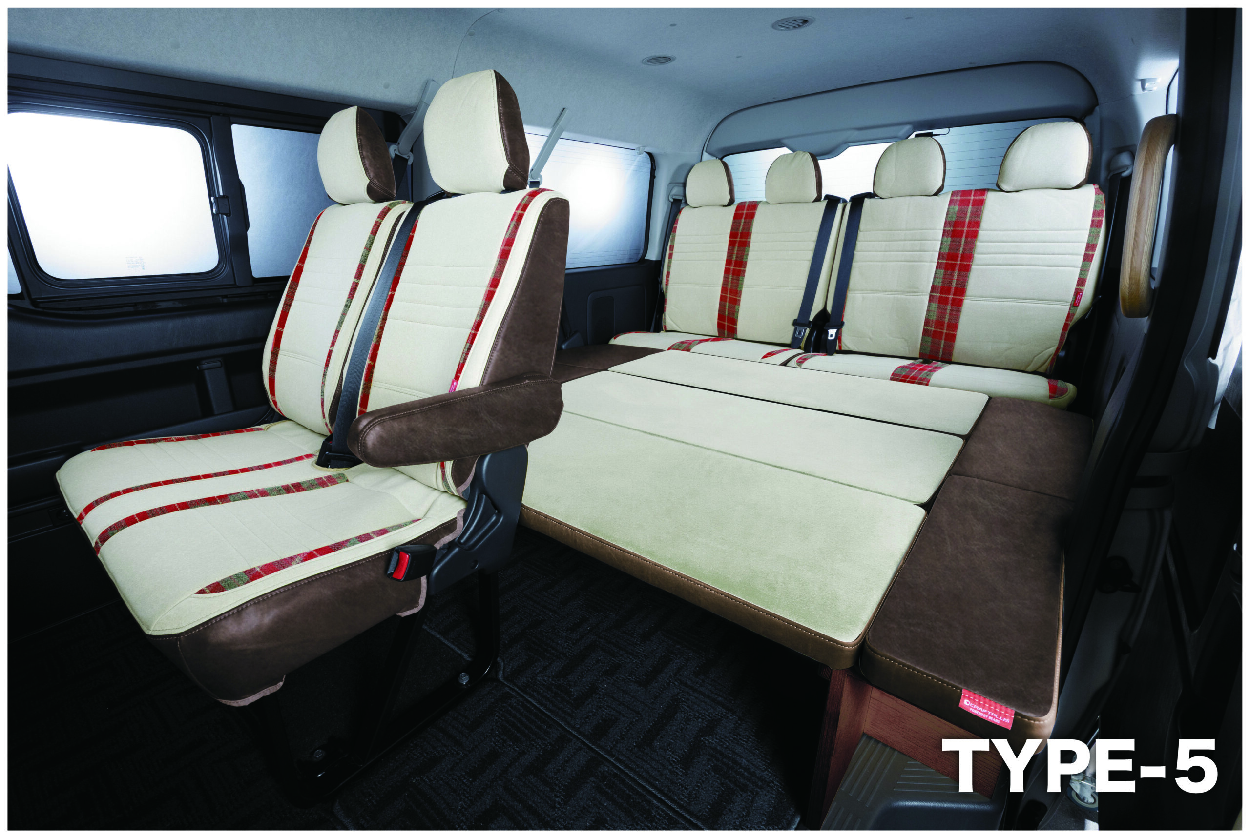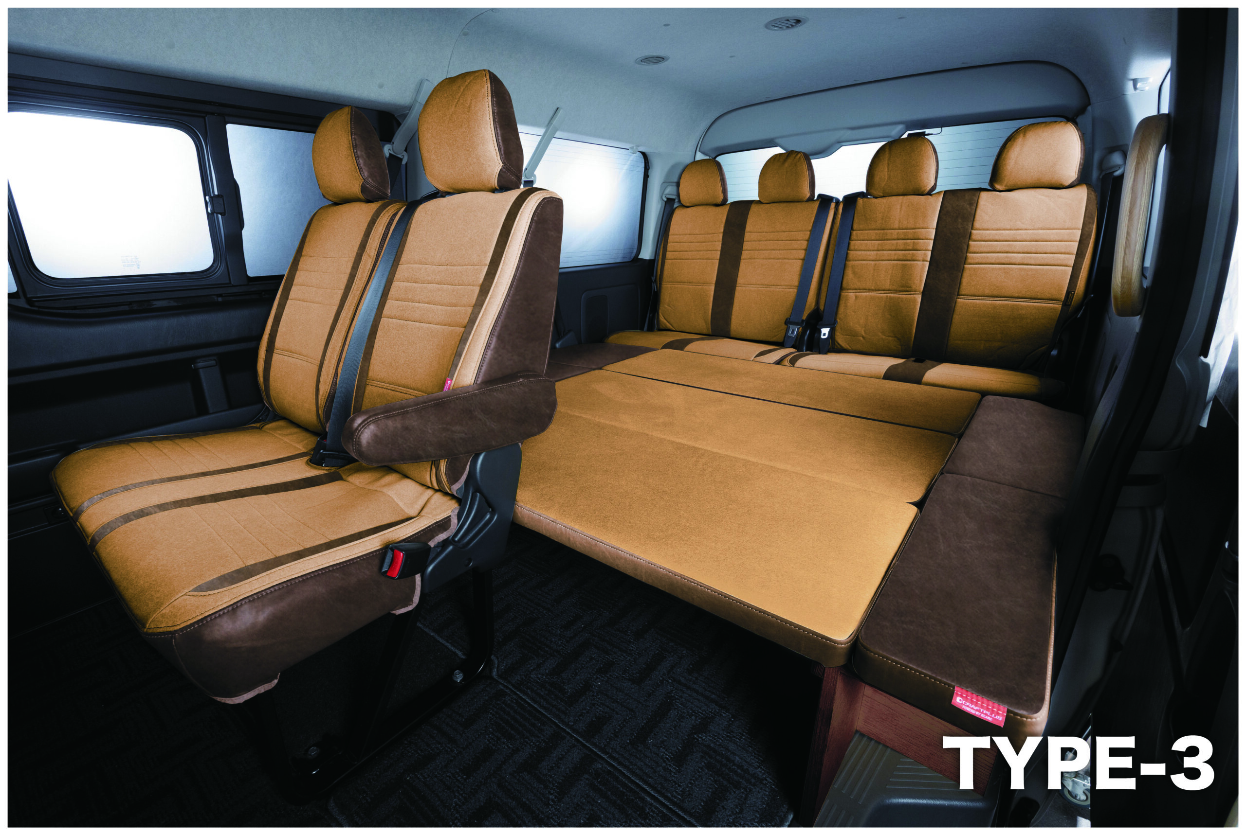 ワゴンGLの室内を格段に使いやすく変身させる「CP700ベッドキット」。乗車定員の10名はそのままキープしつう、3列目シートを横座りの2人掛けベンチシートに変更することで広々としたフラットスペースが出現します。