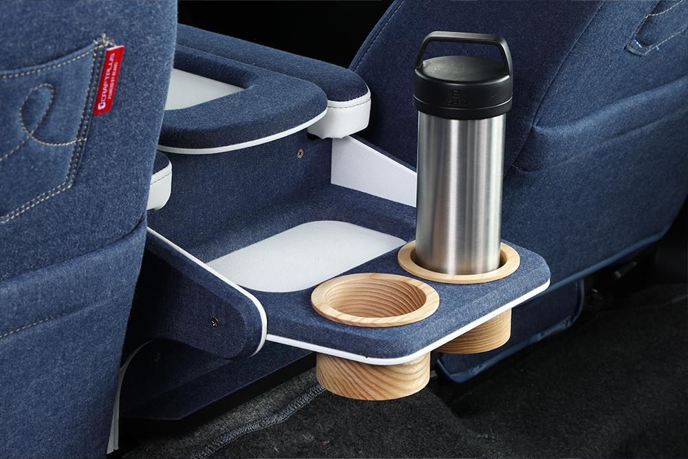 純正ではインパネからジュースホルダーが飛び出てしまうため、ジュースを置くと運転席からエアコンの調整がしづらいうえに、助手席からはナビのモニターが見えなくなってしまう…。そこでドライビングポジションを崩さずに、手を伸ばせば届く位置にジュースホルダーをセッティングしました。