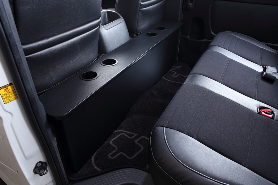 エンジンフードをスマートに隠してバン感を払拭できる「デッキカウンター」。純正感を損なわない加飾感を抑えたシンプルなデザインが特徴です。 取り付けはとっても簡単で付属しているマジックテープを純正カーペットに貼り付けるだけ。 工具は一切不要のワンタッチ使用・気軽に装着でき、エンジンメンテナンスの際もすぐに脱着できるので安心です。