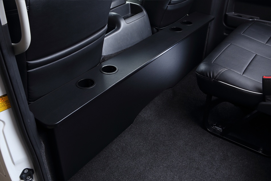 エンジンフードをスマートに隠してバン感を払拭できる「デッキカウンター」。純正感を損なわない加飾感を抑えたシンプルなデザインが特徴です。 取り付けはとっても簡単で付属しているマジックテープを純正カーペットに貼り付けるだけ。 工具は一切不要のワンタッチ使用・気軽に装着でき、エンジンメンテナンスの際もすぐに脱着できるので安心です。