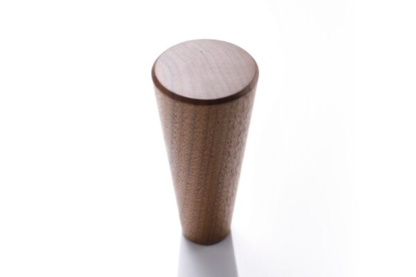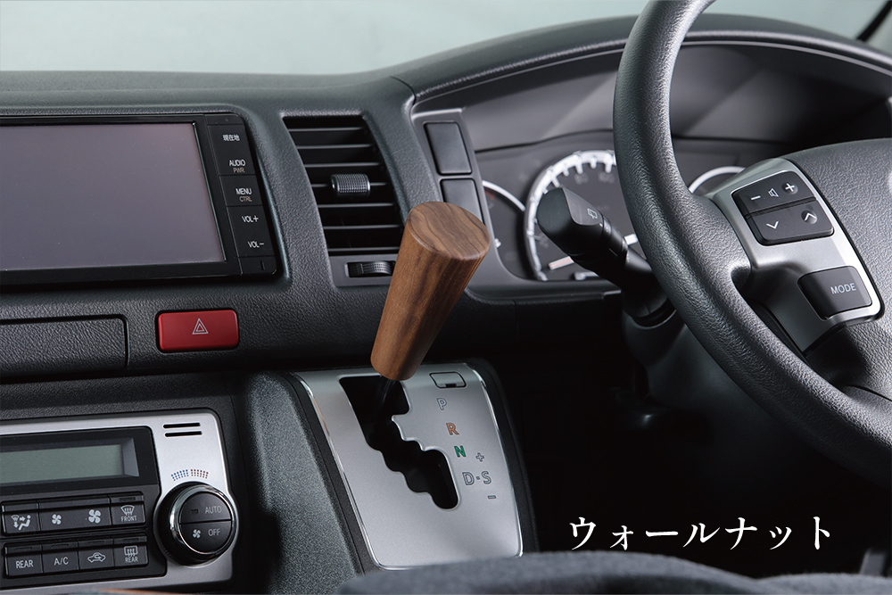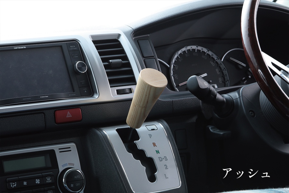手が直接触れるシフトノブは、触っているときの木の心地よさ…をぜひ感じてほしい部分。そのため手が触れる部分は敢えて丸っこく整えず、シャープな設置面になるように設計。 天面の角は敢えて面取りをした独特の形状にも拘っています。