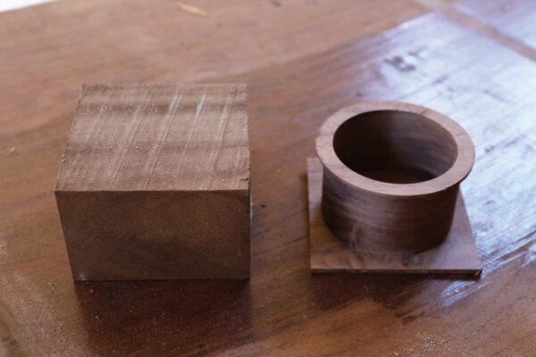 カップホルダーは65mm~80mmの厚い無垢材のブロックからひとつひとつ削り出したコダワリの品。 そのほとんどが木屑となり使用されません。 このカップホルダー用の木の調達だけでも困難を極めます。そこまでして得られるのは、木目の繊細なつながり。 些細ですがそんな細部に職人の魂が宿っています。