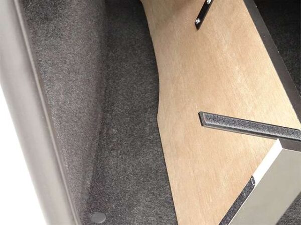 セカンドキャビネットの取り付けには、一切工具の必要がありません。 キャビネットに付属しているマジックテープを、純正カーペットに貼り付けるだけで装着できます。 純正形状にピッタリと仕上げているので、だれでもカンタンに取り付け可能です。