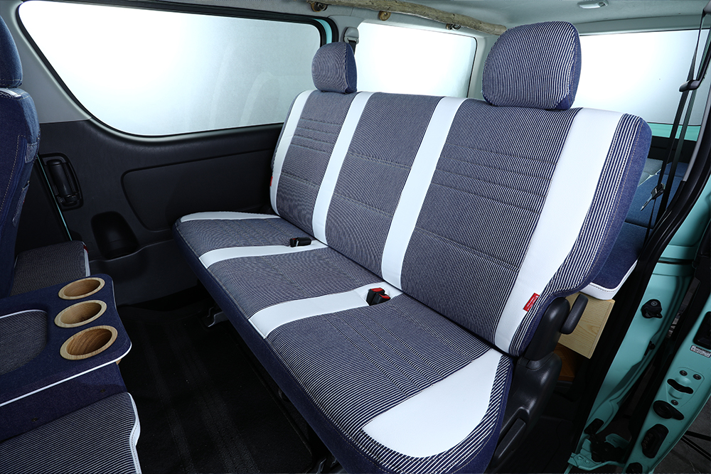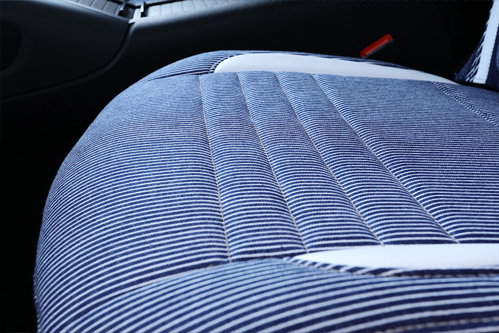 今や「Made in kojima」として有名な世界的デニムブランド。創立115年を超えるその繊維工場で、糸の段階で染める先染め糸を使用したデニム生地が生産されています。 クラフトプラスがシートカバーやベッドキットに使用するデニムは8oz、柔らかく軽やかで人が触れるのにちょうどいい厚み。ストレッチ性も兼ね備えています。