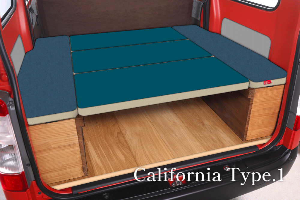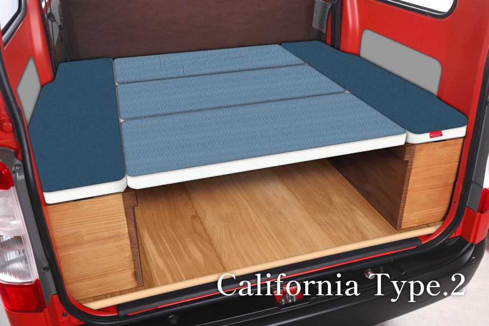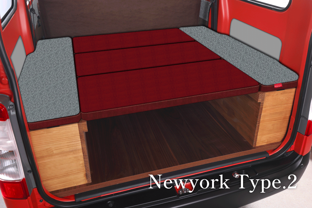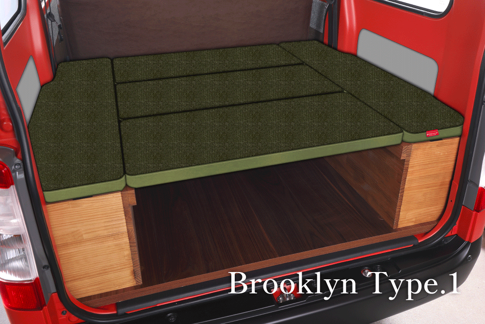 今や車中泊は車内での過ごし方ナンバー1とも呼べる人気の遊び方。そんな時にぜひ使っていただきたいのがこのベッドキット。横置きに展開するセンターマットが3枚と左右のキャビネット上に各1枚ずつの計5枚構成。