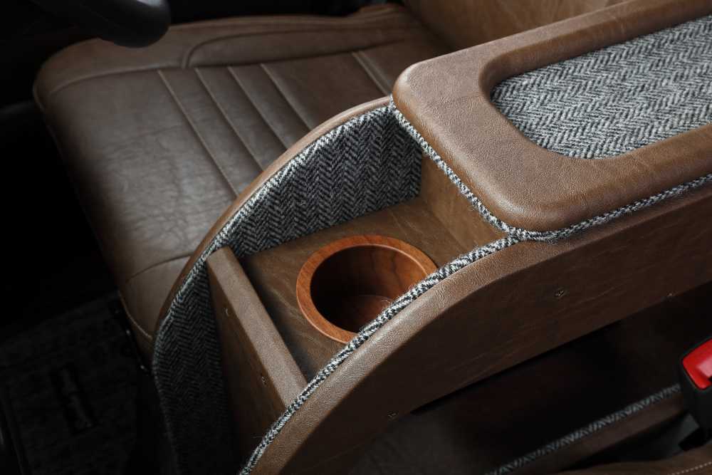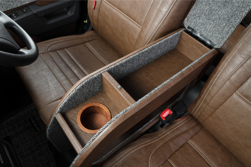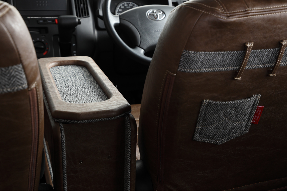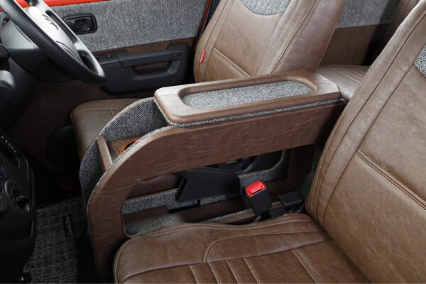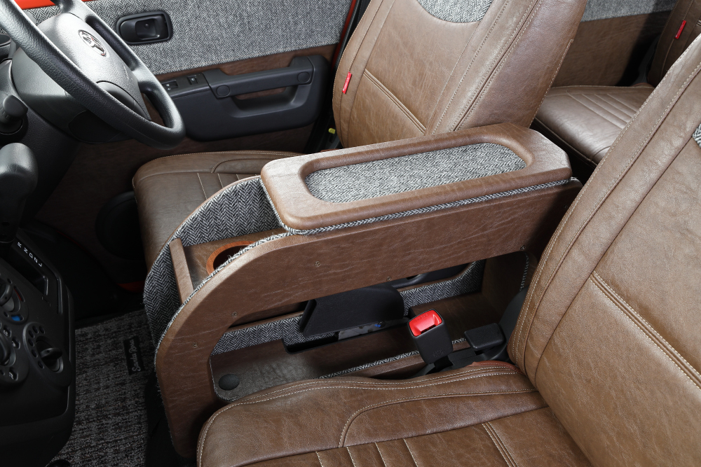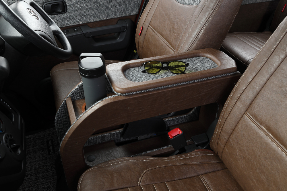 「カッコ悪いから商用車はイヤ」という声も払拭する洗練された室内空間。肘が置けて小物も収納する便利さ、見た目のグレード感もアップします。