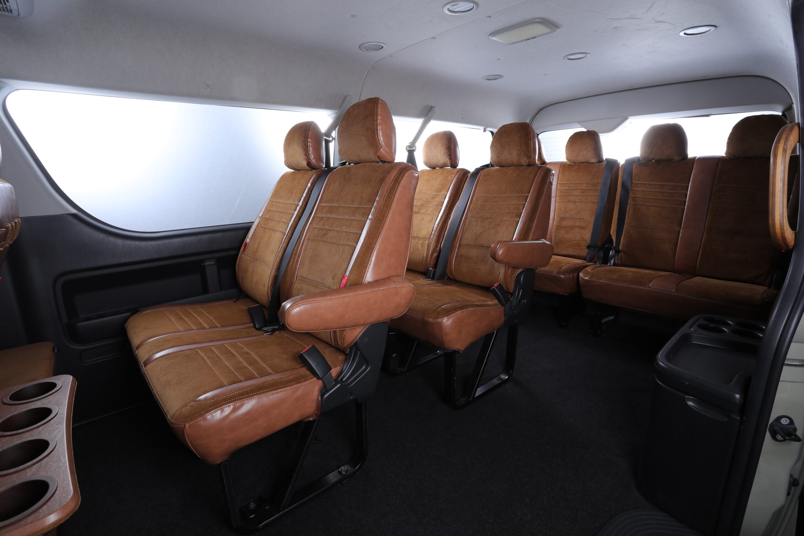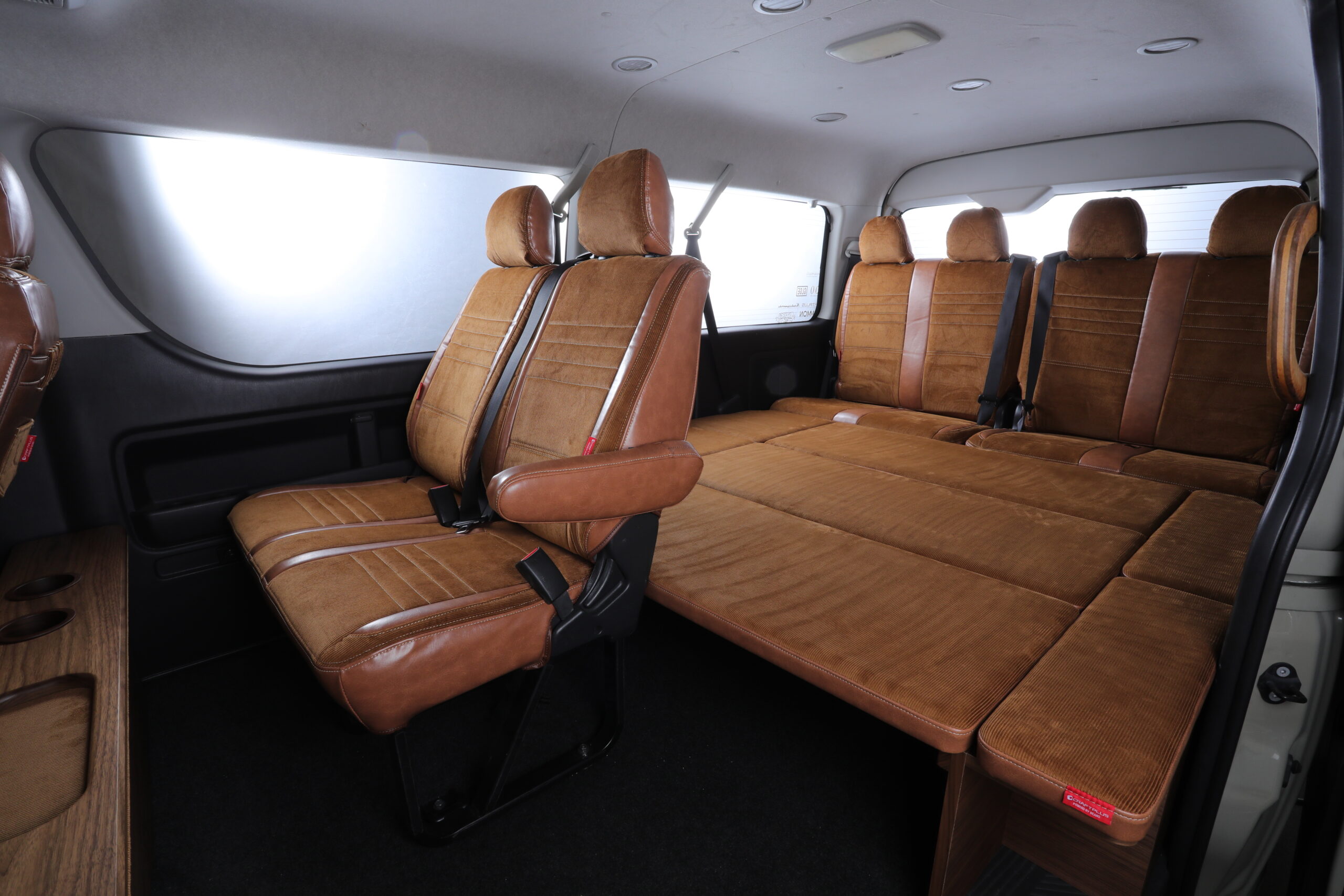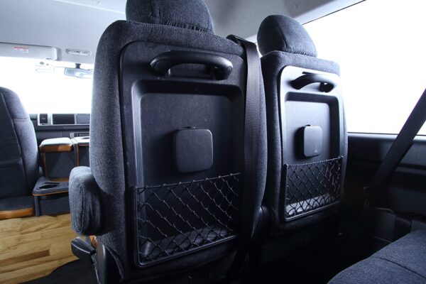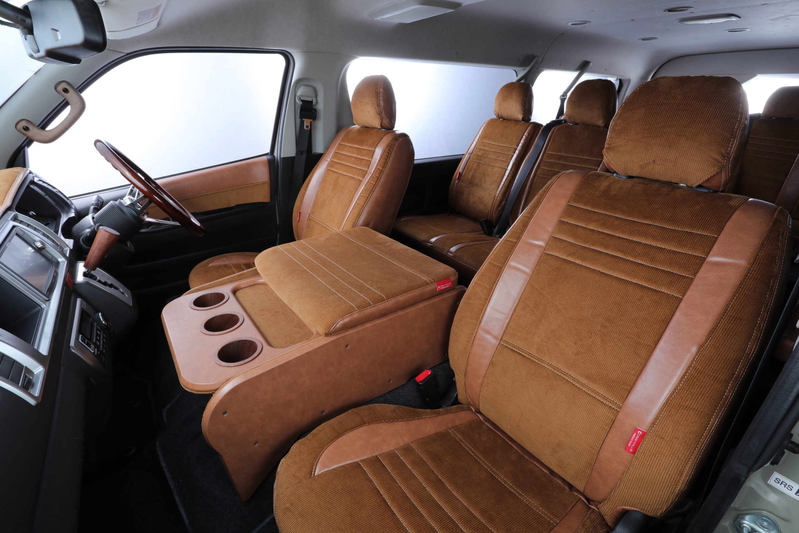 専用設計&立体裁断で、純正シートのようにジャストフィット。長時間座っていてもずれてきません。純正シートに被せるだけで、室内の雰囲気を一新します。 2列 / 3列目シートの背面は、ジュースホルダーや収納ポケット付きの純正パネルをそのまま使用できるように設計しています。