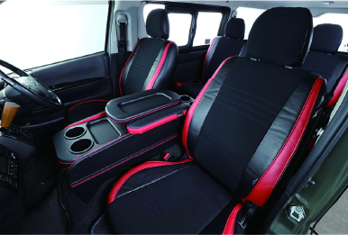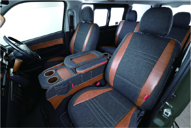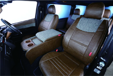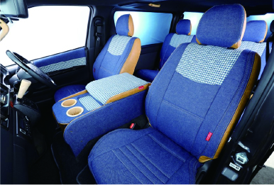 視覚的な占有面積の大きさから車内イメージを左右する中心的存在、それがシートカバー。素材感、彩り、デザインの切り替え。レザー×ファブリック生地という異素材同士の組み合わせも思いがけない化学変化をもたらし、自分だけの空間づくりに貢献してくれること間違いなしです。しかもセンターコンソールやベッドキットといった周辺アイテムとの馴染みの良さにも配慮。クラフトプラスのシートカバーは純正の内装の中にもしっくりと馴染み、全体をトータルでコーディネートしてもコンプリート感を底上げする。なによりもその素材のチョイスや差し色として存在感を発揮する生地にはファッション由来のアイデアがふんだんに盛り込まれています。車内という無機質な空間を居心地のいい自分だけの部屋にします。